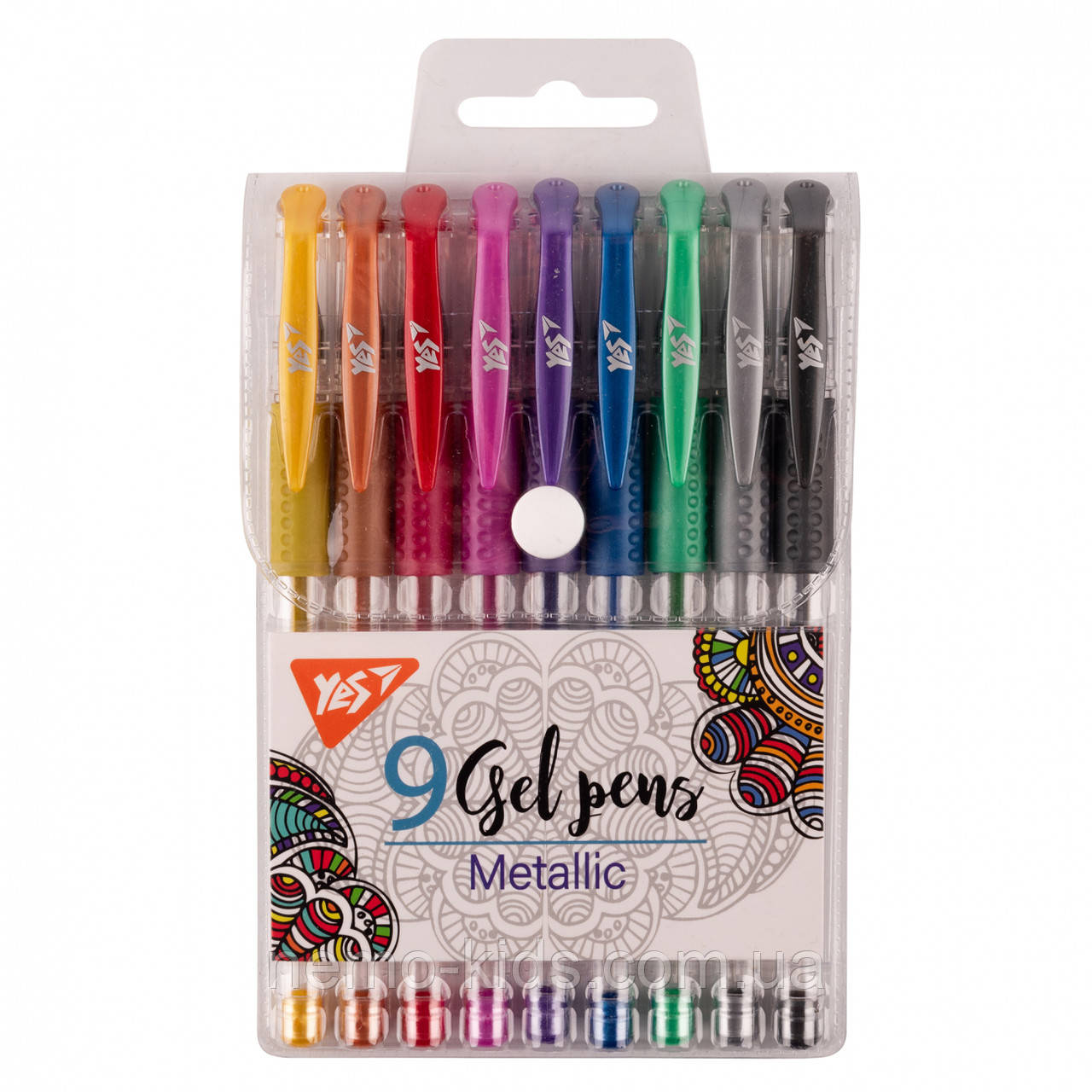 У наборі 9 ручок - 9 яскравих кольорів чорнила з блиском металлік. Насолоджуйтесь яскравими кольорами з гелевими ручками. Вони призначені як для дітей, так і для дорослих. Підходять для створення різних малюнків, розмальовок, оформлення конспектів, журналів та щоденників. Ручки мають ергономічний прогумовий грип, що зменшить втому від довгого письма. Тривалий термін служби, легке письмо та завжди відмінна якість – безперечні переваги ручок YES!